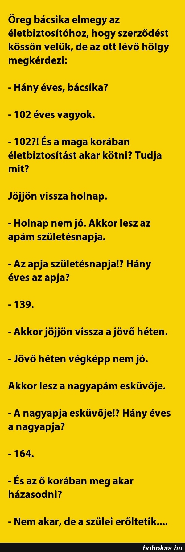 Öreg bácsika elmegy az életbiztosítóhoz,..