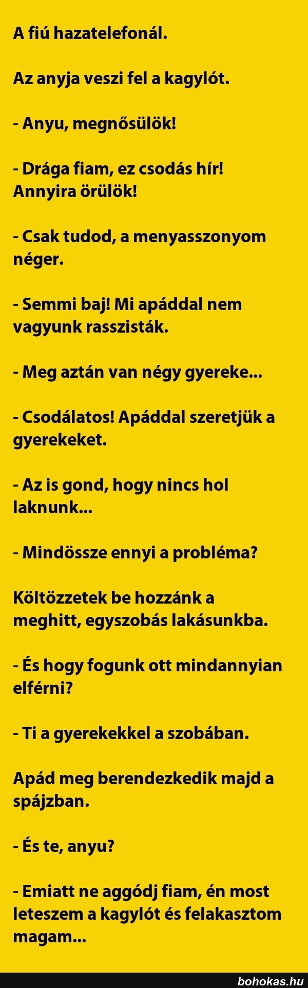 A fiú hazatelefonál. Az anyja...