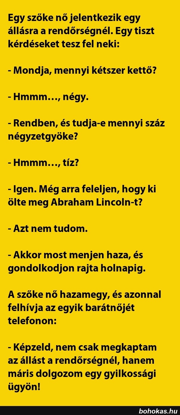 Egy sz?ke n? jelentkezik egy állásra..