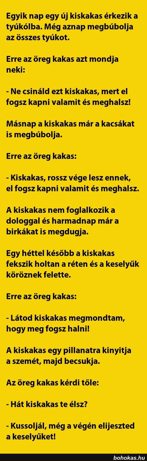 Egyik nap egy új kiskakas érkezik a tyúkólba...