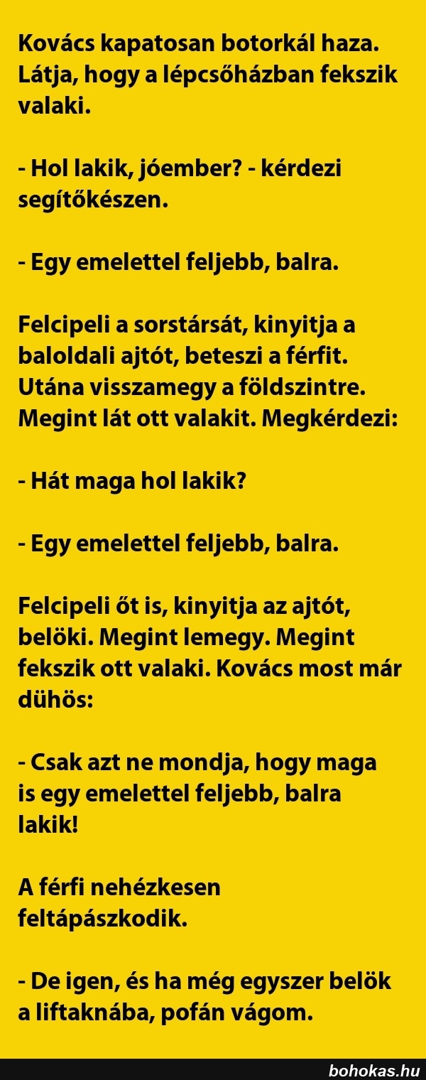 Kovács kapatosan botorkál haza. ..