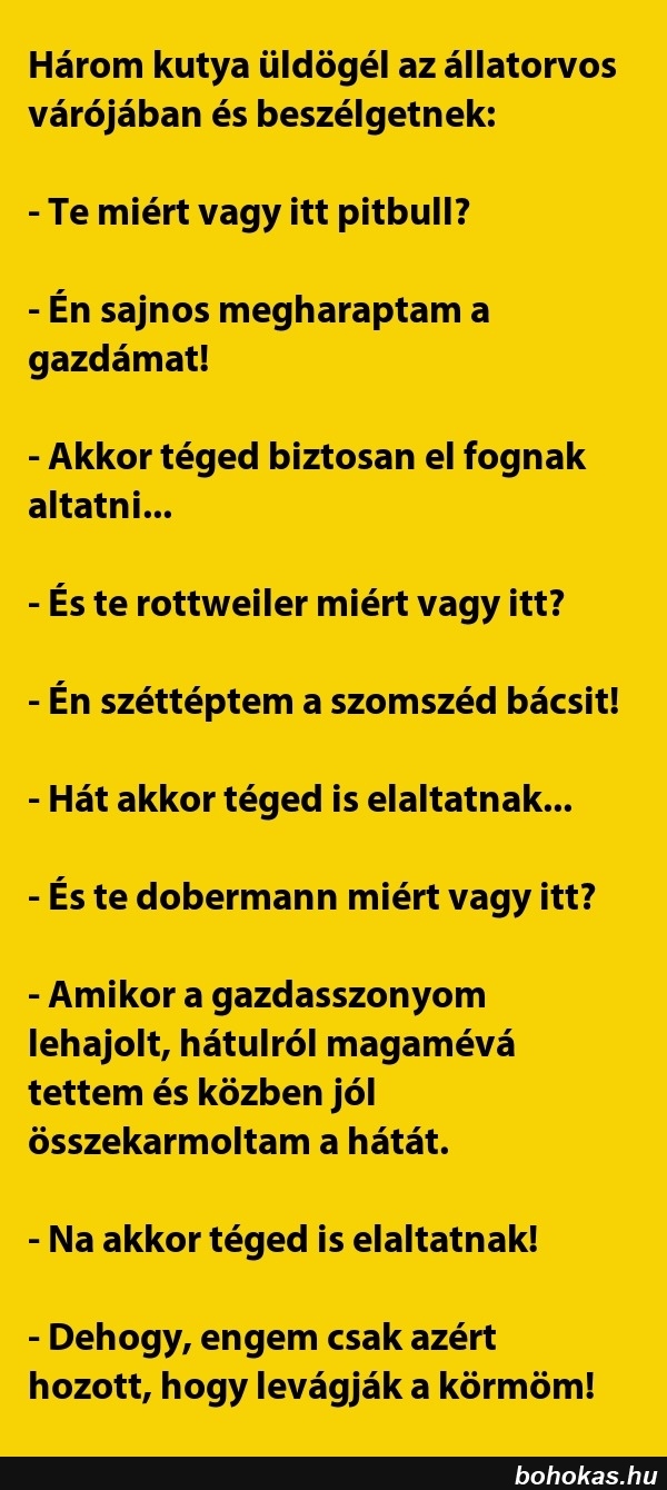 Három kutya üldögél az állatorvos ...