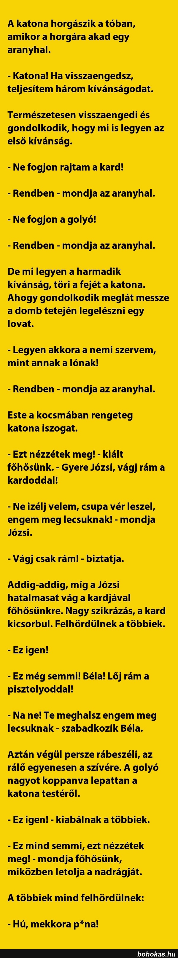 A katona horgászik a tóban, amikor a horgára...