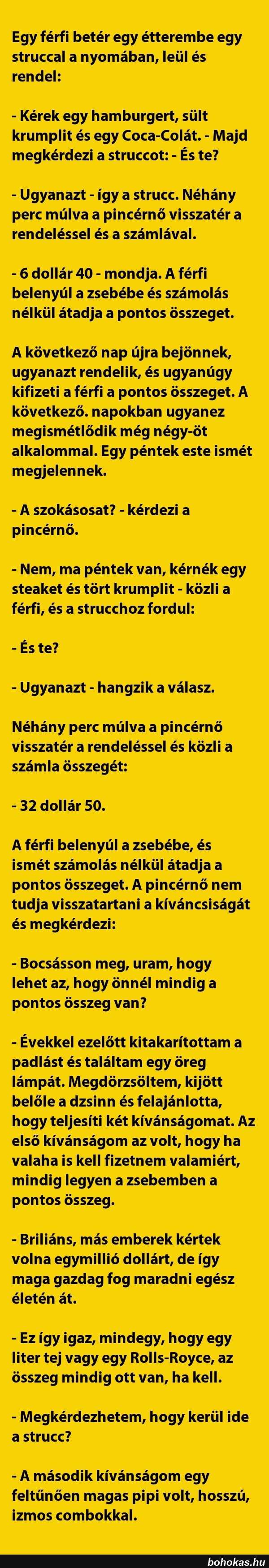 Egy férfi betér egy étterembe egy struccal ...