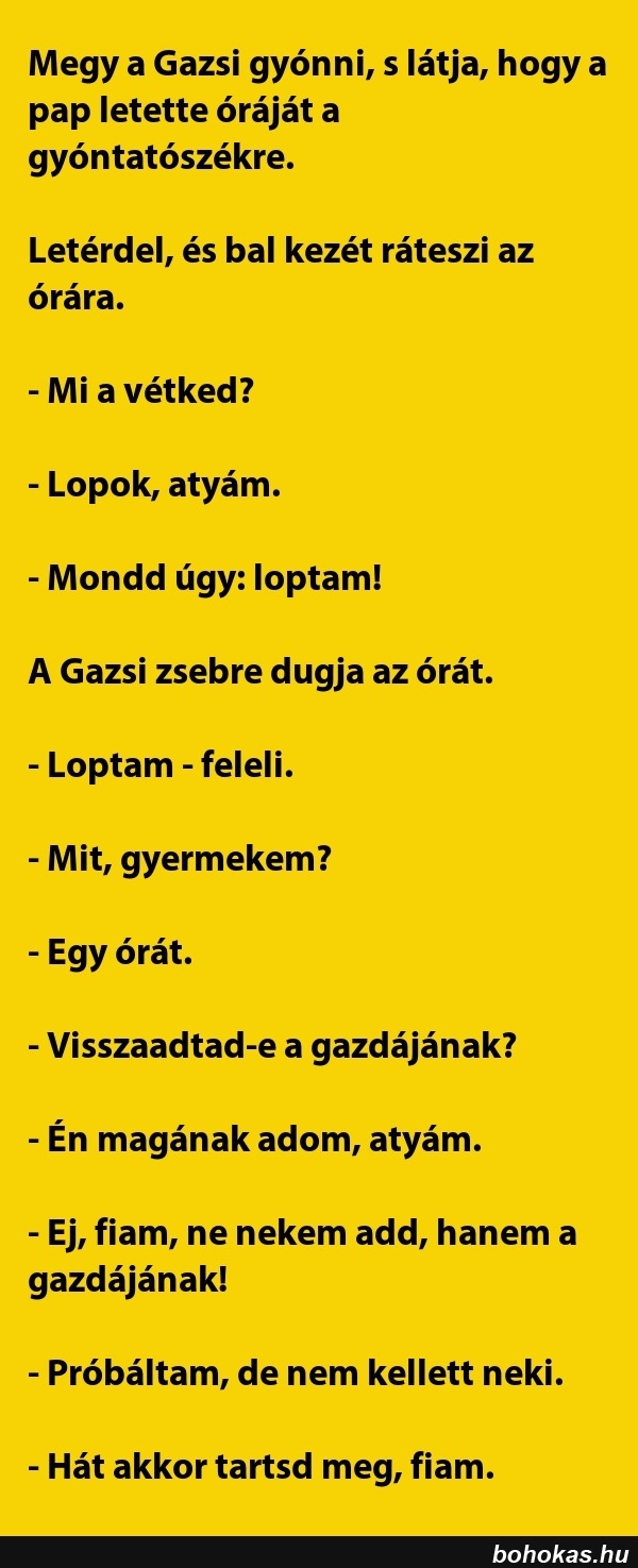 Megy a Gazsi gyónni, s látja, hogy ..